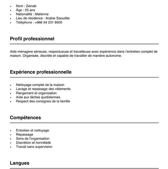 Serious, organized and hardworking housekeeper with three years of experience in Saudi Arabia. Experienced in complete house cleaning, ironing, laundry and general maintenance. Discreet, respectful and able to work without supervision. Good adaptability and high sense of cleanliness.تاريخ الميلاد