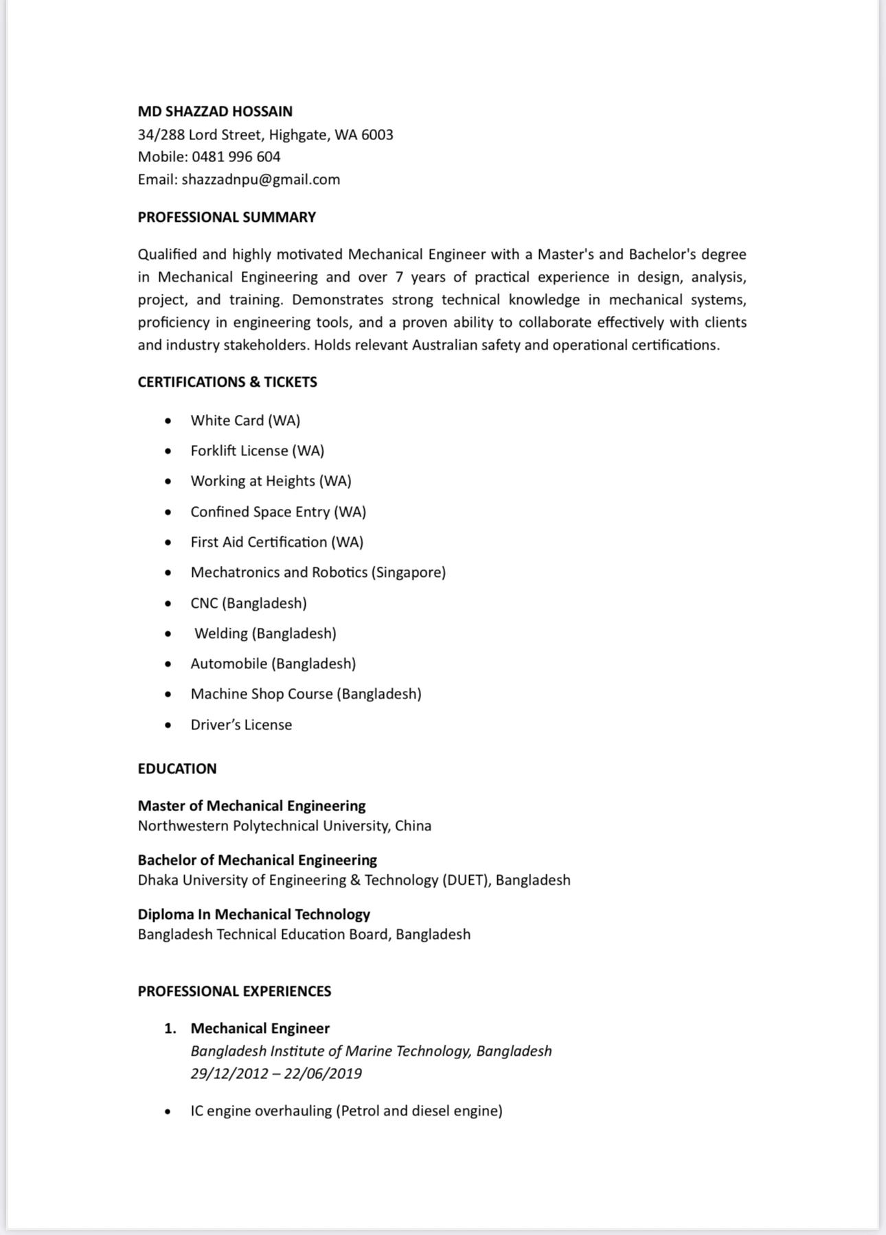 Mechanical EngineerBirthdate