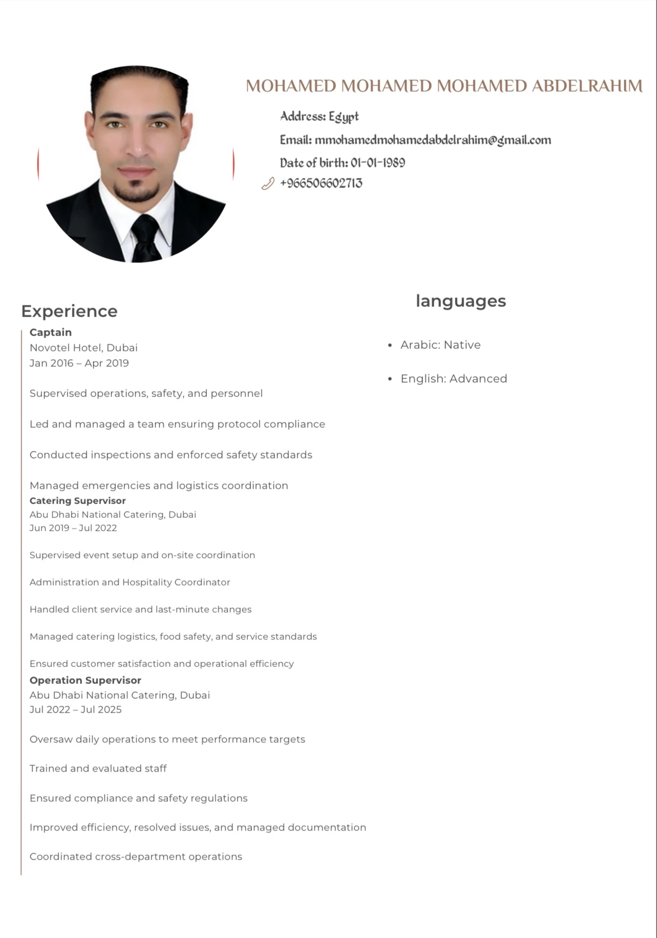 أعمل في مجال الفنادق كاترينج مطاعم مشرف صاله حفلات ضيافات عندي الخبره الممتازه في المجال ومعي الشهايد المطلوبهپیدائش کی تاریخ